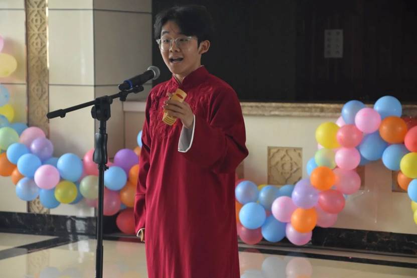 由2023级刘权圣同学为大家带来的京剧《定军山》《穆桂英挂帅》选段,由2022级蒲旭博同学和2020级毕业生刘泓澍同学带来的传统相声《八扇屏》,由2023级张富尧同学带来的快板《天安门前升国旗》等传统曲艺节目,将传统文化元素与现代相融合,将联欢会推向了高潮。
