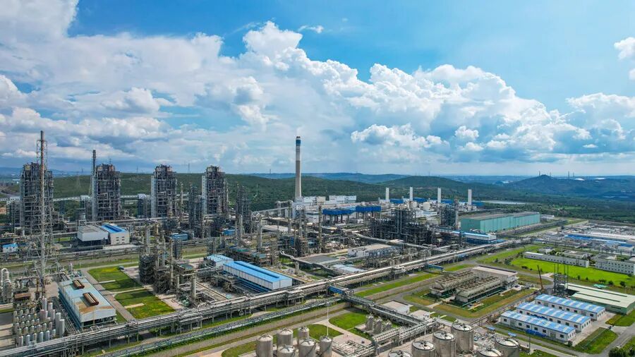 这是2025年7月23日在山西省长治市拍摄的潞安化工集团煤基清洁能源公司厂区全景(无人机照片)。新华社发