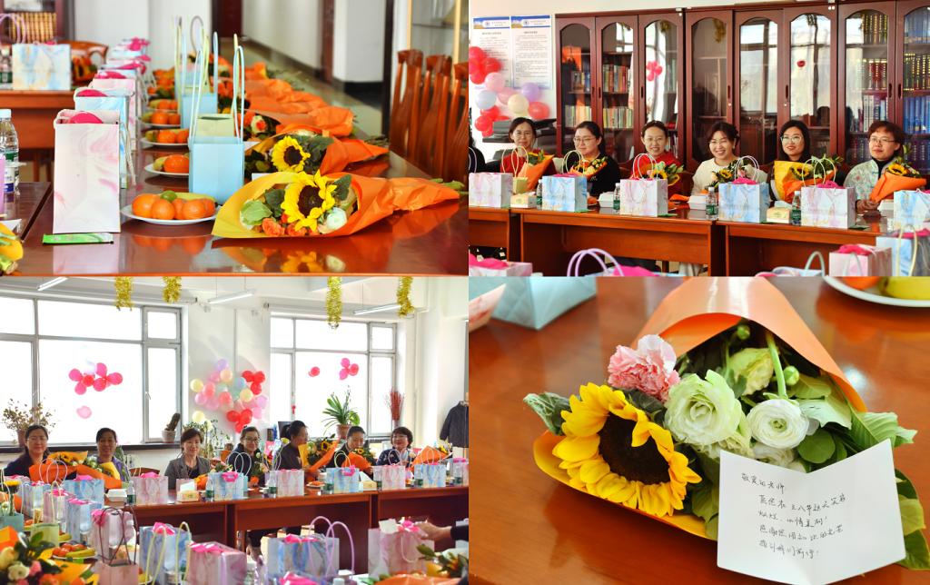 活动现场花香四溢,气氛温馨。女教职工们充分发挥想象力和创造力,用灵巧的双手,修剪向日葵、玫瑰、康乃馨等多种花材,精心地把一朵朵鲜花错落有致地搭配在一起,制作出一个个独具匠心、赏心悦目的插花作品。