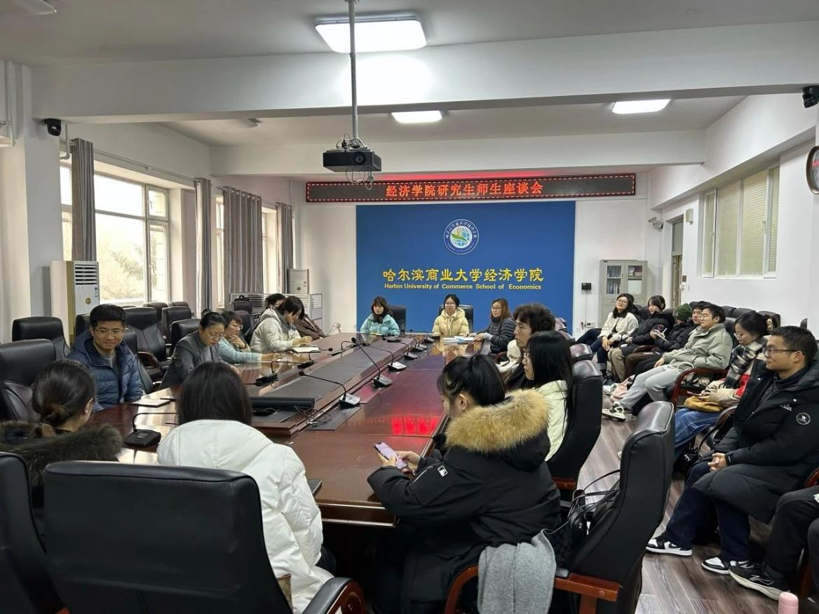 为全面提升我院研究生培养质量,帮助学生解决在学术科研、求职就业、校园生活等方面的实际问题,推进学院人才培养工作取得成效,2024年11月26日,经济学院在1209会议室举办研究生师生座谈会。学院党委书记王春华、副书记武皓、副院长韩朝亮、院团委书记姚春艳、学科秘书钱佰慧,及2024级硕士研究生代表参加会议。座谈会由姚春艳主持会议。
