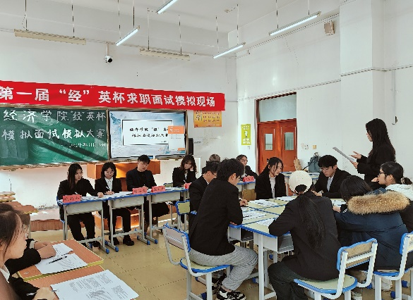 为持续深入做好大学生职业发展教育,提高学生求职能力,强化求职技能,全面提升就业竞争力,做好进入职场的充分准备。11月10日,经济学院第一届“经英杯”求职面试模拟大赛于A区主楼0201教室顺利举办。本次比赛由徐世杰老师担任主评委,经济学院就业创业服务中心主任张添意、副主任刘佳及各部部长担任副评委。