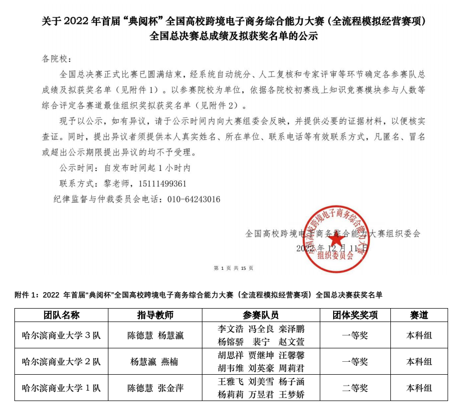 经济学院国际经济与贸易专业师生参加全国总决赛获奖名单
