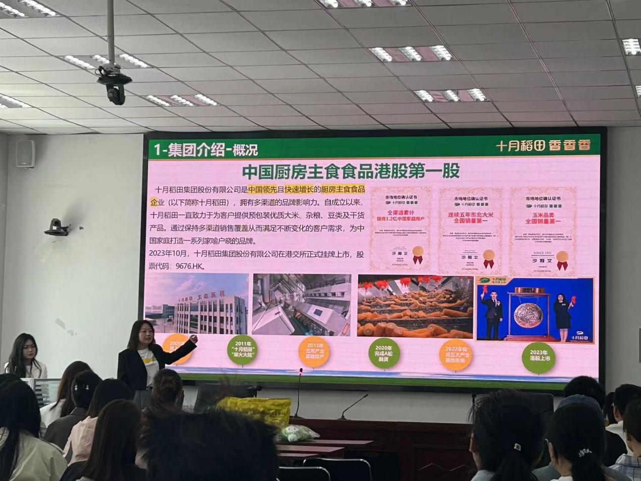 为进一步促进校企合作交流,充分发挥校企合作的优势,服务学生成长成才,给毕业生提供更多优质就业岗位,促进2025届毕业生高质量就业,近日,经济学院邀请十月稻田集团股份有限公司校招负责于1号教学楼1102会议室召开企业专场招聘宣讲会。