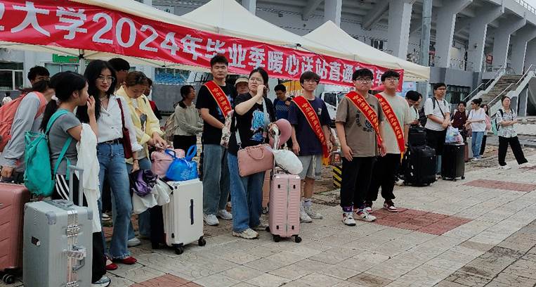 为浓厚2024届毕业生和母校感情,切实为毕业生做实事,经济学院志愿服务团队在学校毕业生送站服务点,积极开展送君一程,扶摇万里主题志愿服务活动。