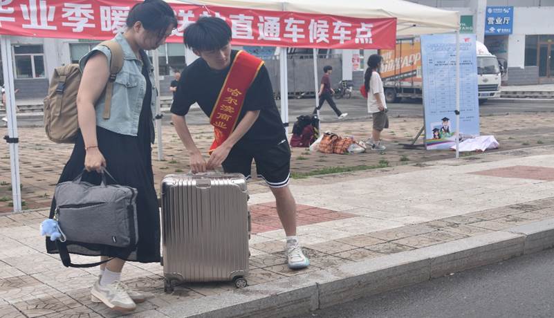 志愿团队细致统计了毕业生离校时间,根据学校每天四次的送站发车时间排出时间表,帮助毕业生整理行李,搬运物品,确保他们在学弟学妹的温暖传导中,满载学校的深情踏上人生新征程。在与毕业生的互动中,学弟学妹们和学长学姐聊着天,畅想着未来,交流着感情,分享着经验。