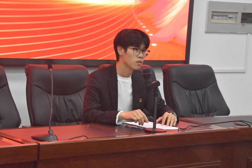随后,与会干部进行思想政治理论学习,由学院学生会主席邵睿作为学生党员干部代表、学生会主席团成员面向与会干部做题为《以身作则、慎始敬终》的专题领学。从重温党史故事、回顾英雄事迹、原著理论学习、尽职履责担当四个方面开展专题思想政治理论学习,号召全体学生干部要坚定不移跟党走,矢志奋斗新时代,将对党忠诚融于个人血脉,将甘于奉献融于个人生活,将使命担当融于个人理想,书写为中国式现代化挺膺担当的青春篇章。