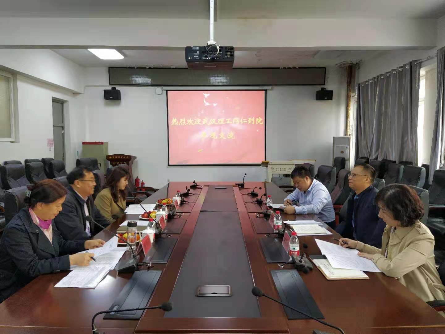 交流中,韩平院长对我院办学历程、专业概况学生人数、师资力量等院情做了简要介绍,重点介绍了我院近几年在学生培养、服务地方中取得的成效。韩平院长在回顾我院近几年专业发展成果时还提出今后开展专业协同发展的工作计划,并希望今后加强与武汉理工大学经济学院的协作共同发展。武汉理工大学经济学院杨春书记对我院公开规范化的办学模式表示肯定,对我院取得的成绩表示赞赏,他也详细介绍了该院专业发展概况。杨兰品教授结合自己的工作经验和学院的发展情况,希望能与我院多方面进行合作,互促发展。