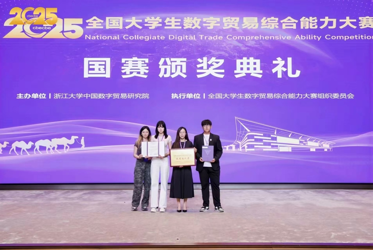 金秋送爽,捷报频传。9月26日至28日,第四届全国大学生数字贸易综合能力大赛全国总决赛在浙江大学隆重举行。我院杨慧瀛副院长与吴英艳老师率领四支劲旅出征,与全国精英学子同台竞技。经过激烈角逐,我院四支队伍凭借卓越表现,一举斩获全国二等奖两项、全国三等奖两项,成功刷新我院在该项赛事中的历史最好成绩!同时,我校凭借出色的组织工作荣获“最佳组织奖”,再添荣光。