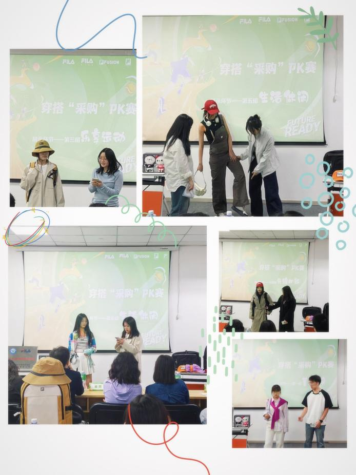 活动的高潮聚焦于“斐乐潮流主题穿搭PK赛”。五组同学在规定时间内,基于斐乐的品牌特点完成了创意搭配,并进行了展示。评委团从商业价值、美学表达及市场适配度等多个维度进行了综合评分。各组同学的现场展示与评委的专业解说,全方位呈现了学生对品牌文化的深度诠释和深刻理解。最终,两组同学凭借出色的表现分别获得了一等奖和二等奖,他们的创意和才华赢得了现场观众的阵阵掌声。