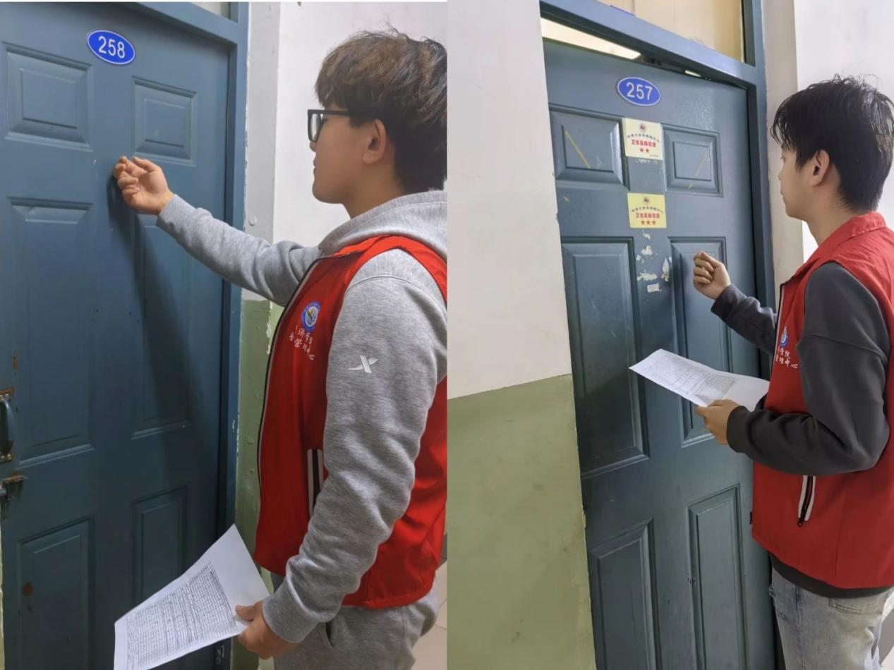 学院舍务管理中心以公正审慎的原则为指导,逐一走访各个寝室,严格依据既定的卫生评估准则进行全面考量,检查完后,再对寝室情况一一进行打分。