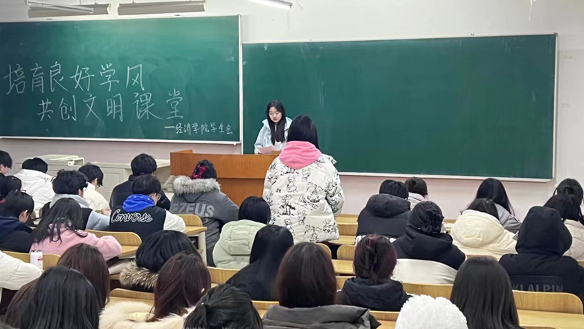 2024年2月26日,经济学院学生会于3206教室举办了“加强学风建设,共创文明课堂”主题学习会。本次会议由经济学院学生会指导教师刘鑫老师主持,学生会全体成员参加。活动旨在交流分享学习感悟,提升学生自主学习意识和学习能力水平,持续深化优良学风建设。在学习会上,学生代表积极发言,深入探讨了学风建设对于个人成长和学院发展的重要意义。分享环节中,同学们积极交流了自己的学习方法和技巧,如设定合适的学习目标、整理知识框架、利用碎片时间学习等。会议最后,刘鑫老师对本次会议进行总结,再一次强调了学风建设、文明课堂建设对于提高学生成绩和自主学习能力,以及培育学生良好学习习惯等方面的重要性和积极作用,要求学生会干部发挥带头作用,自觉投身文明课堂建设。