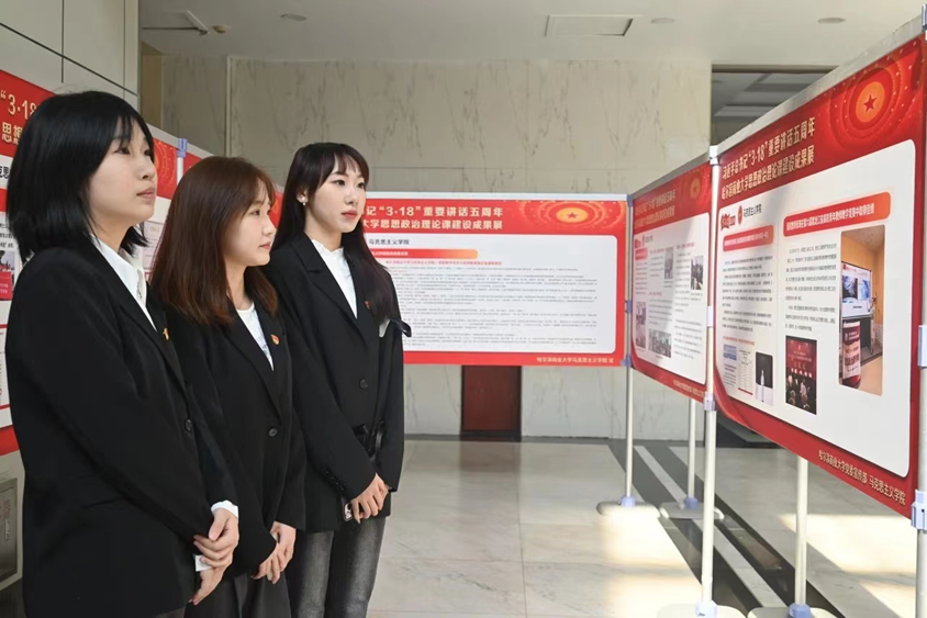 2024年3月20日正值习近平总书记“3·18”重要讲话发表五周年之际,经济学院开展“重温3·18重要讲话,以‘大思政课’培育时代新人”活动,由张春建老师带领经济学院学生党建办公室组织党员师生参观“哈尔滨商业大学思想政治理论课建设成果展。跟随展览的脚步,带领大家重温讲话精神,畅谈所思所感。