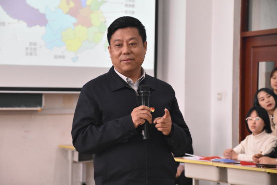 2019年11月7日下午14时,教学主楼0105教室传出阵阵欢声笑语,国际经济与贸易2017-3班的以“家是最小国,国是千万家”为主题的学习习近平国庆70周年庆祝大会讲话主题团日活动正在进行,让28名学生惊喜的是,与班级对接联系的校党委书记孙先民来到他们中间,和同学们一起重温庆典,学习讲话。