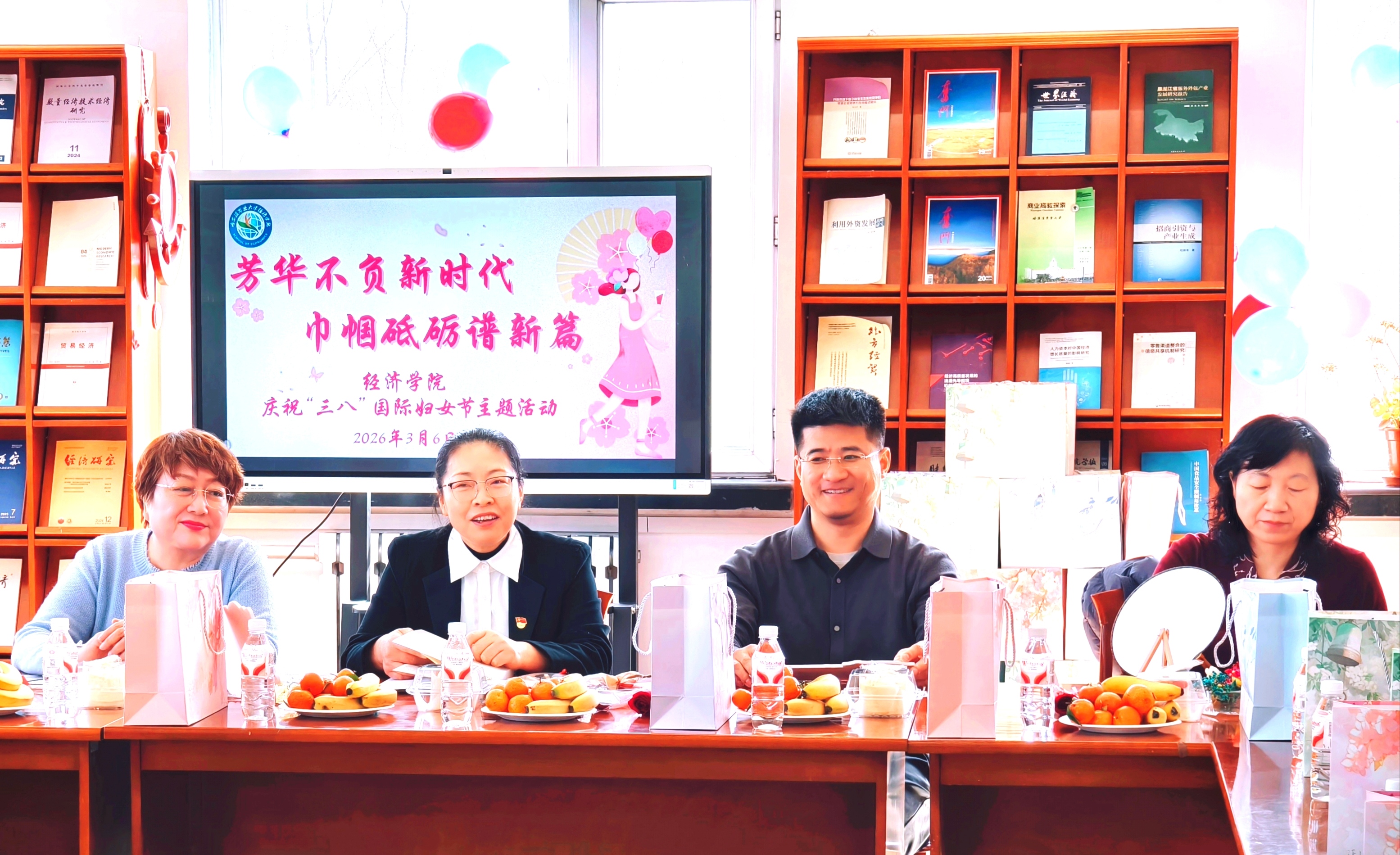 春风有信,巾帼花开。为庆祝第116个“三八”国际劳动妇女节,深入贯彻习近平总书记关于妇女和妇女工作的重要论述,凝聚巾帼力量、赋能学院高质量发展,3月6日,经济学院在A区1309图书阅览室举办“芳华不负新时代,巾帼砥砺谱新篇”主题活动,全院女教职工欢聚一堂,共庆节日、共话发展。