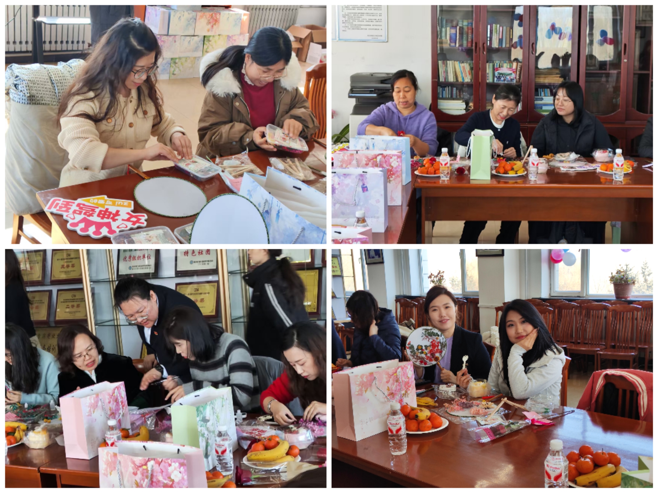 在“执扇绘春·雅集致庆”环节,大家沉浸式体验永生花团扇手作,在指尖匠心与非遗雅韵中舒缓身心、陶冶情操。学院还为每位女教职工送上暖心毛巾礼盒,以细微关怀传递组织温暖,致敬坚守讲台、默默耕耘的新时代女性教育工作者。
